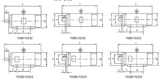 B5 型 - - 機(jī)座無底腳,端蓋上有大凸緣,軸伸在凸緣端。