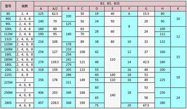 B35型 - - 機(jī)座有底腳,端蓋上有大凸緣,軸伸在凸緣端。