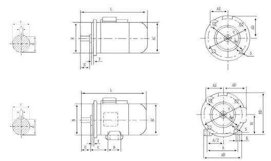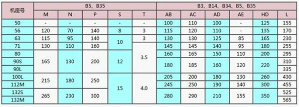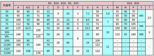 B14型 - - 機座無底腳,端蓋上有小凸緣,軸伸在凸緣端。