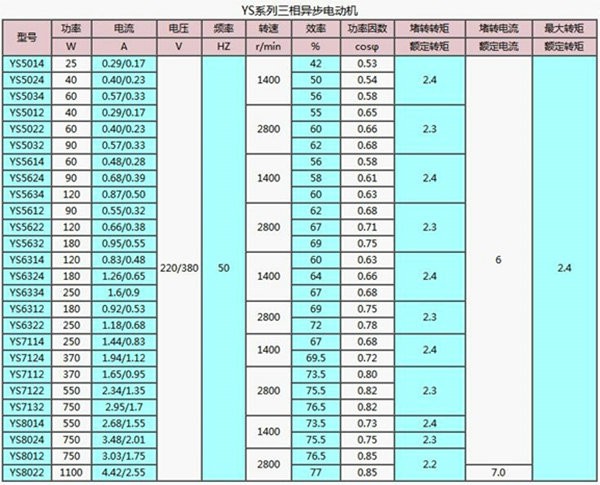 • 產品分類: YS系列三相異步電機